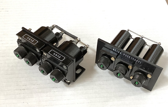 Western Electric 18A FUSE BLOCK 2パラ仕様(10A MAX)・・・\20,000 3パラ仕様(15A MAX)・・・\30,000 4パラ仕様(20A MAX)・・・販売終了 各ヒューズ付 Spare Fuse:1/4A, 1/2A, 1-1/3A, 2A, 3A, 5A ・・・@\1,500 |